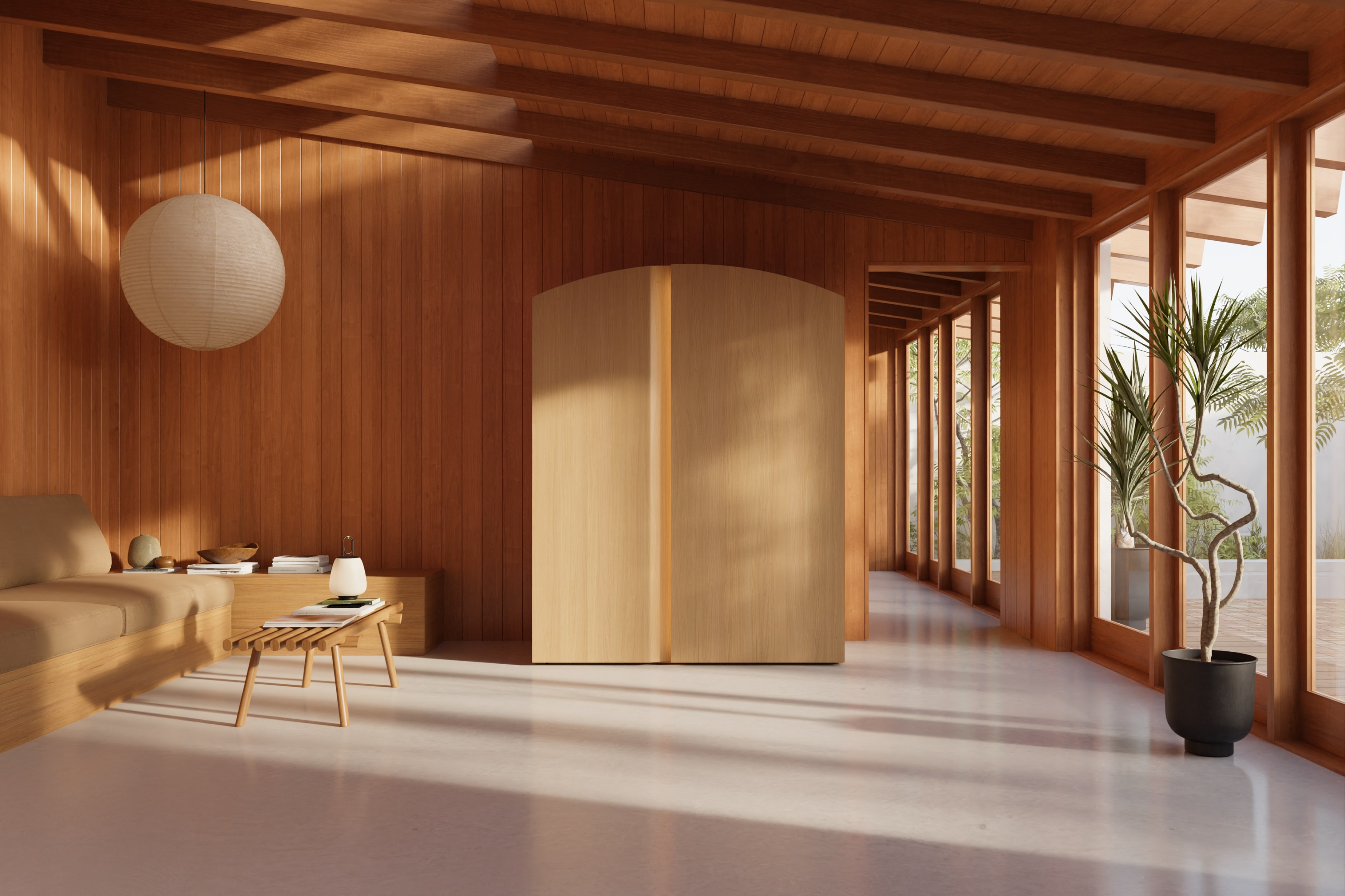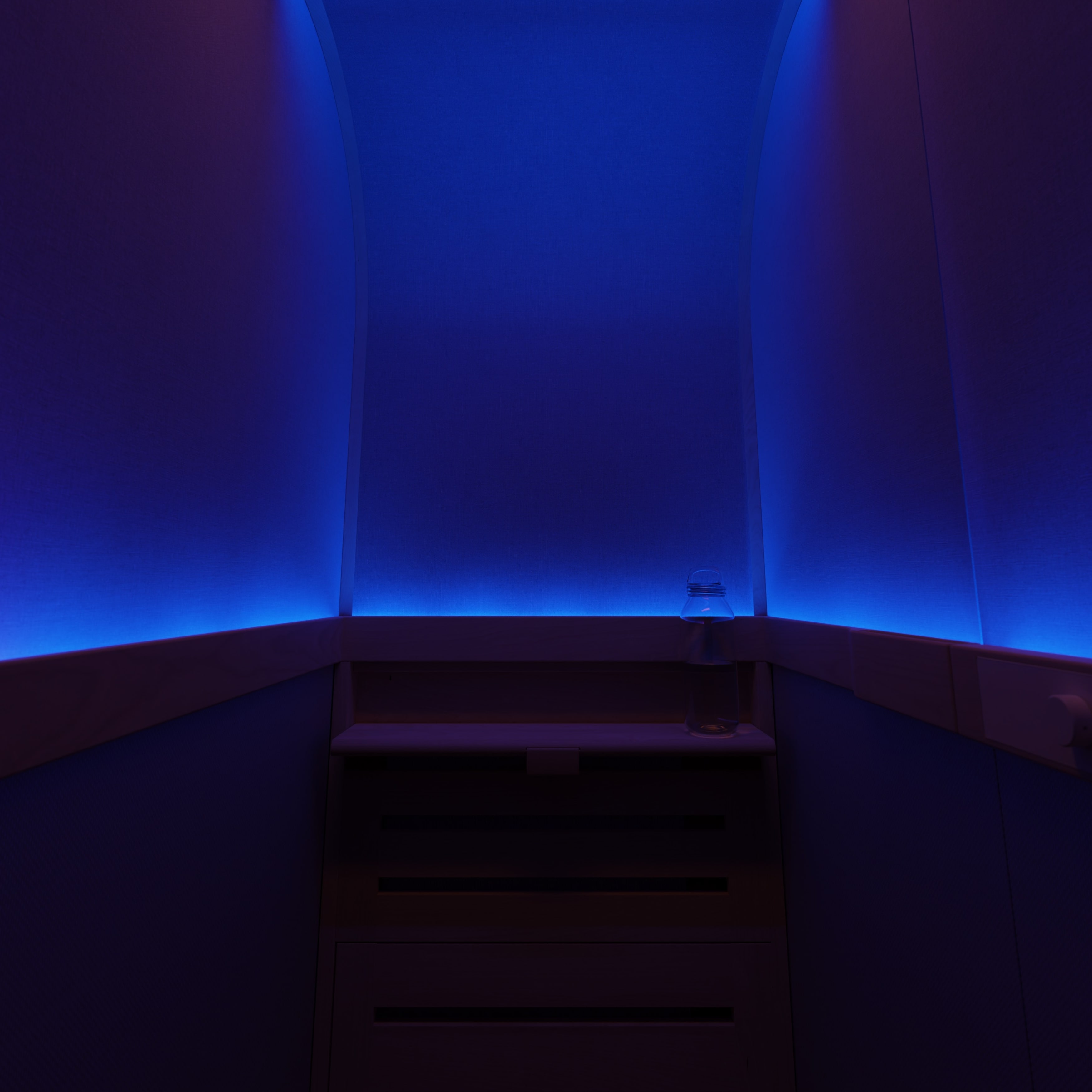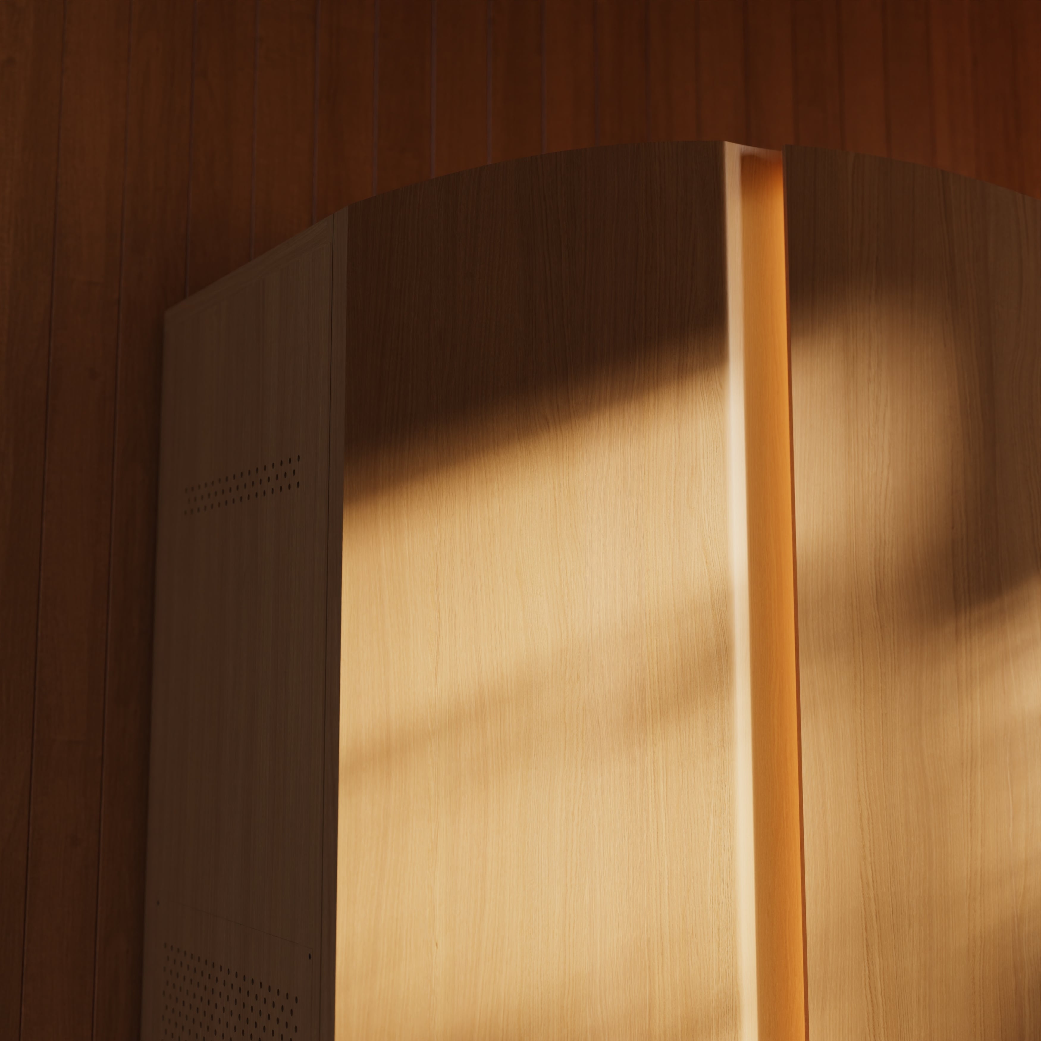Arc is a personal in-home experiential sauna for stress reduction and relaxation. Arc integrates therapeutic infrared heat, soothing light, and high-fidelity surround sound all in one. Arc includes an AI software that evolves with you, engaging users with personalized programs, meditation, and breathwork content, to relax the mind and body.