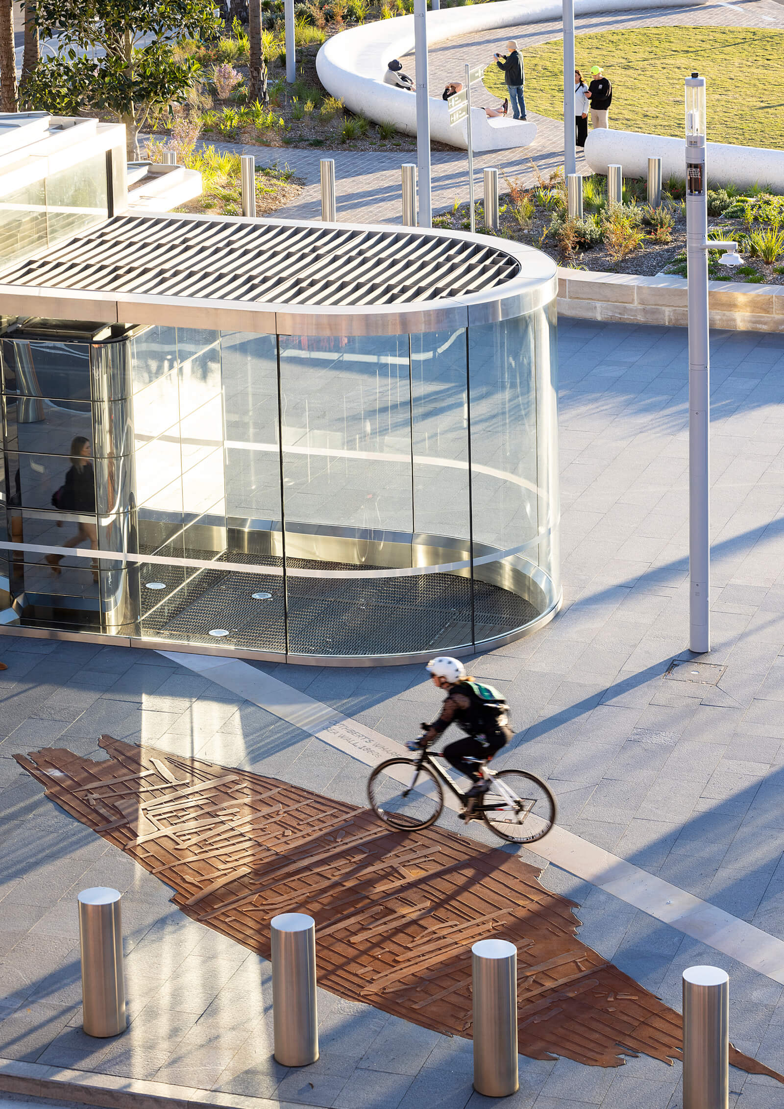 With its backdrop of Sydney Harbour, Barangaroo Station Park has become one of Sydney’s most memorable station plazas. An interpretive strategy instils Barangaroo Station Park with the site’s Indigenous and colonial heritage creating both a place to visit and a stepping stone to visit other locations and attractions.