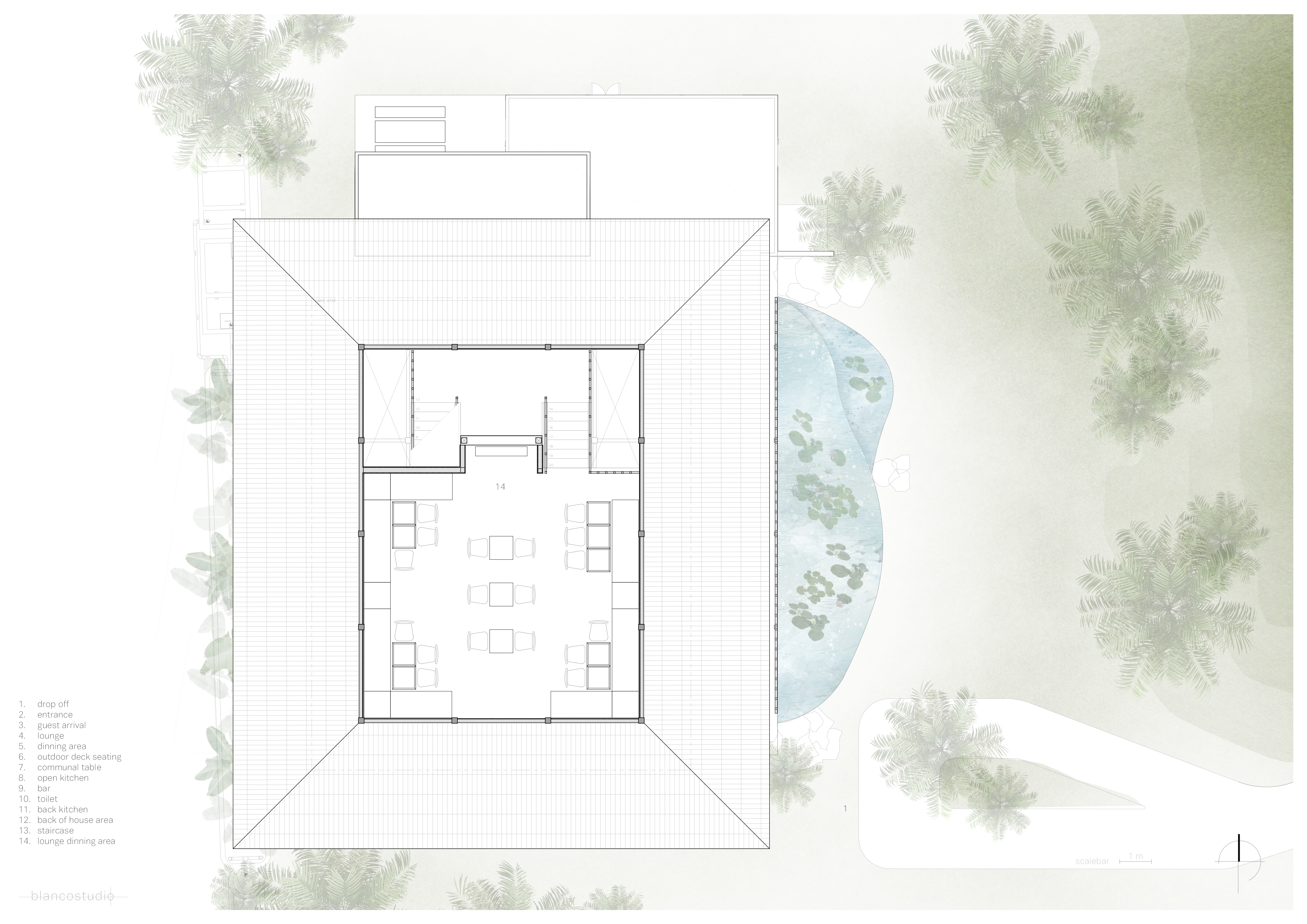 Begawan Biji, designed by Blancostudio and supported by Eco-Mantra for integrated environmentally sustainable design (ESD), sets a new precedent for ESD in the hospitality sector, merging traditional Balinese architecture with contemporary regenerative principles. Featuring reclaimed materials, passive cooling, and on-site wastewater treatment. Begawan Biji supports Begawan Giri, a regenerative agriculture initiative, in an effort to create better livelihoods for farming communities around the restaurant, growing natural and organically cultivated Mansur Heritage Rice in partnership with local Balinese farming.