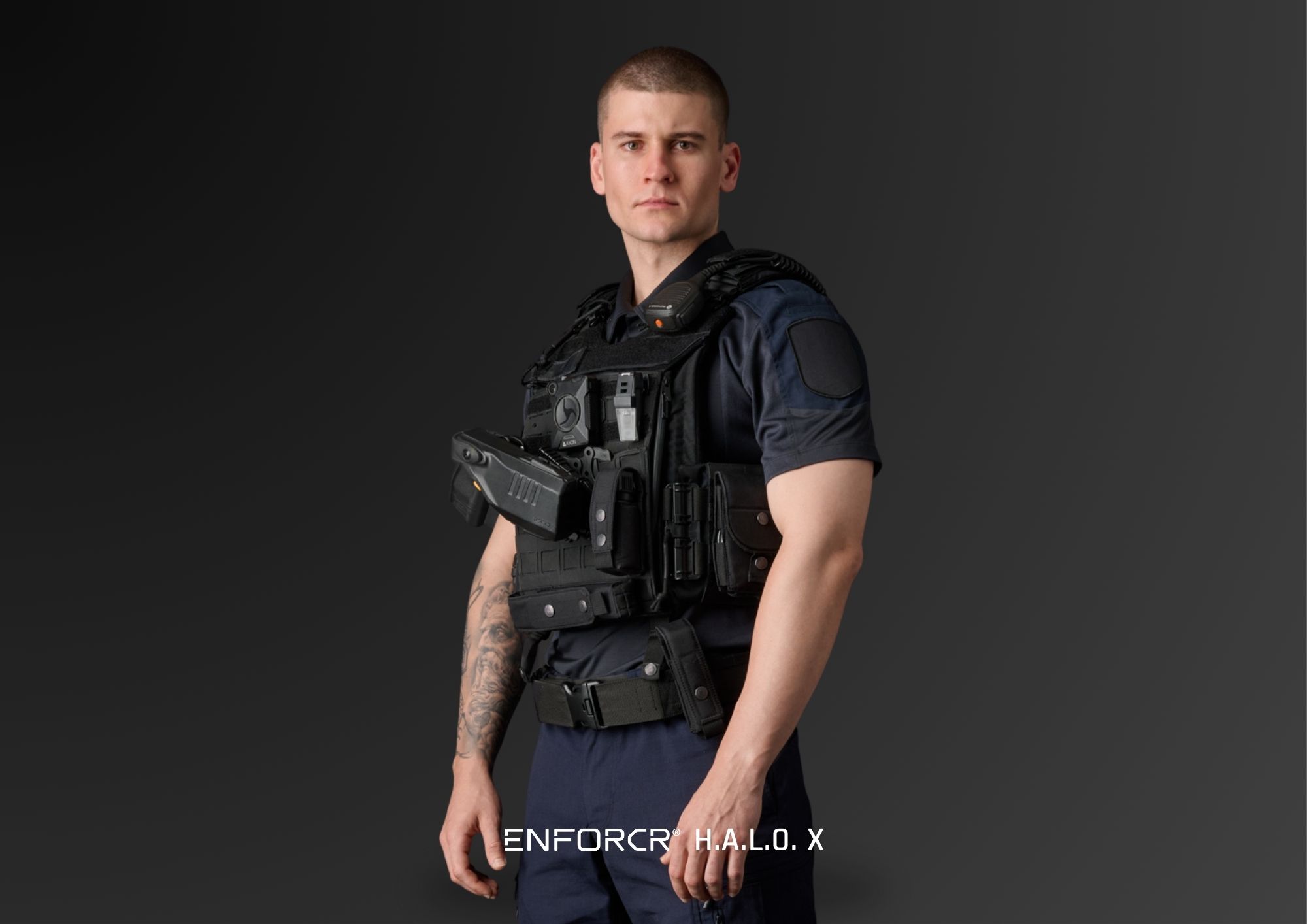 • The ENFORCR® H.A.L.O. X carrier with its modular and lightweight architecture, delivers unmatched adaptability and operational efficiency for law enforcement personnel. It features microclimate-regulating padding for thermal comfort, laser-cut vertical and horizontal MOLLE systems for gear, and a high-performance laminate to withstand intense wear without sacrificing mobility. Wearer-specific personalisation ensures tailored comfort. Meticulous field testing validates its ergonomic and operational superiority. Its ability to integrate seamlessly with front, back, and side Soft Armour Panels (SAP) and Hard Armour Plates (HAP) pushes the boundaries of both ballistic protection and flexibility, setting a new benchmark in load-carriage solutions.