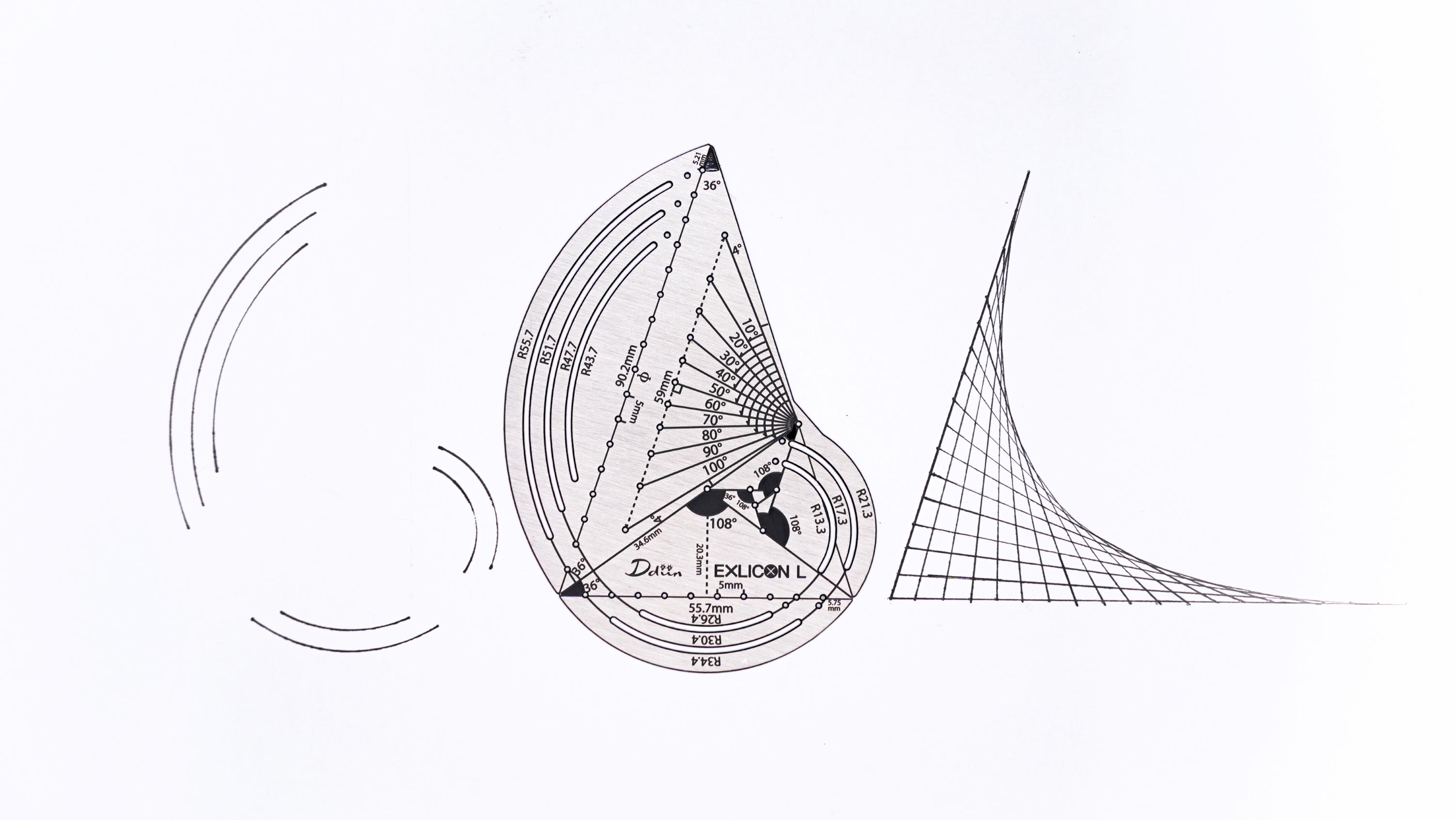 The tool set infuses the golden ratio of approximately 1.618, a design principle admired for its visually appealing proportions and historically revered in art. The set offers a comprehensive array of features that facilitate the creation of various geometric shapes, enhanced by precise markings for accurate measurements and scale adjustments.