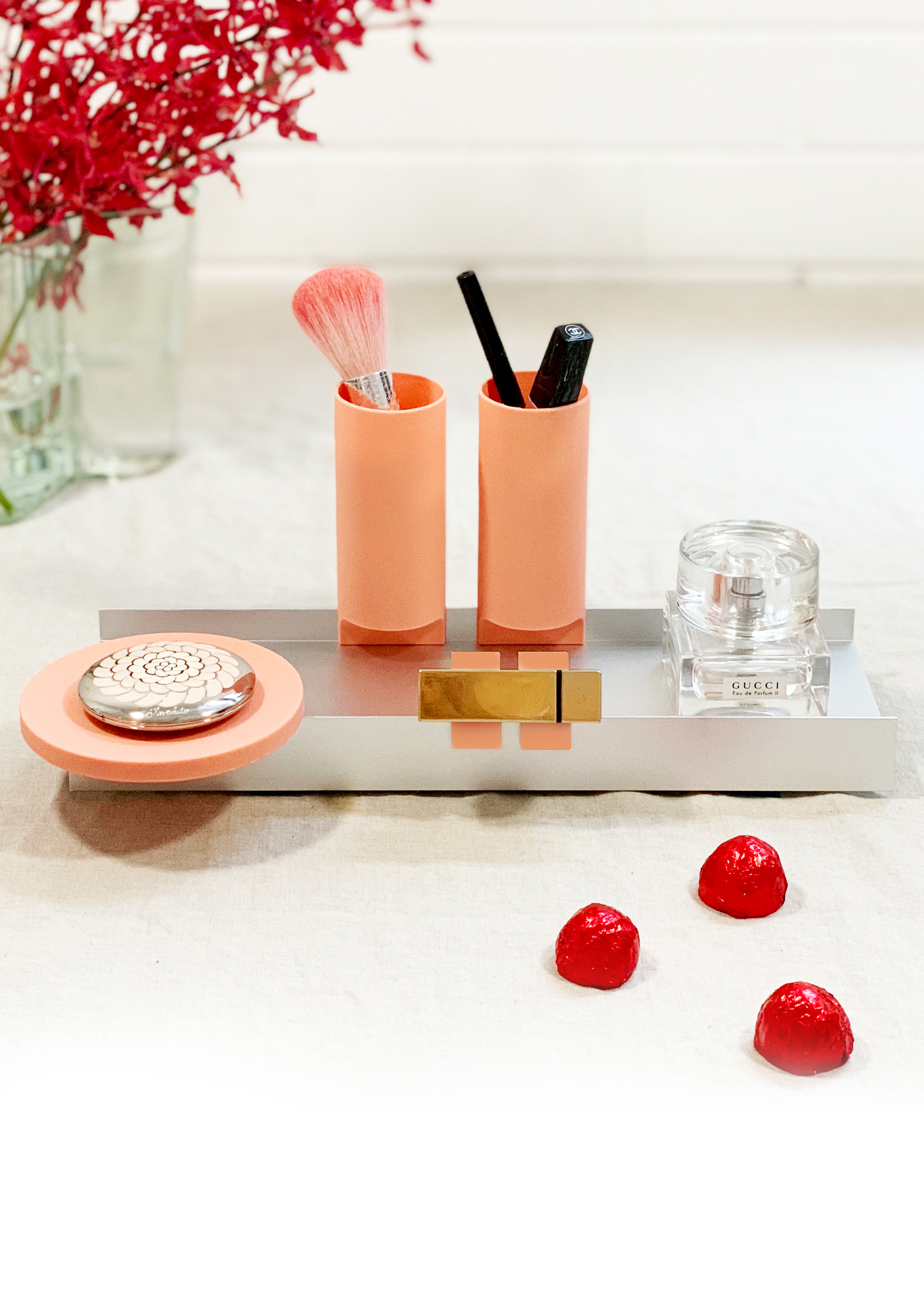 Inspired by Oscar Niemeyer’s National Congress building, Jim Hannon-Tan’s Linea is all about tabletop architecture. Its form is like a miniature streetscape when the number of different interchangeable components are brought together. Dishes, and cantilever cups stand tall while the tray provides a foundation for the customised configurations and lengths.