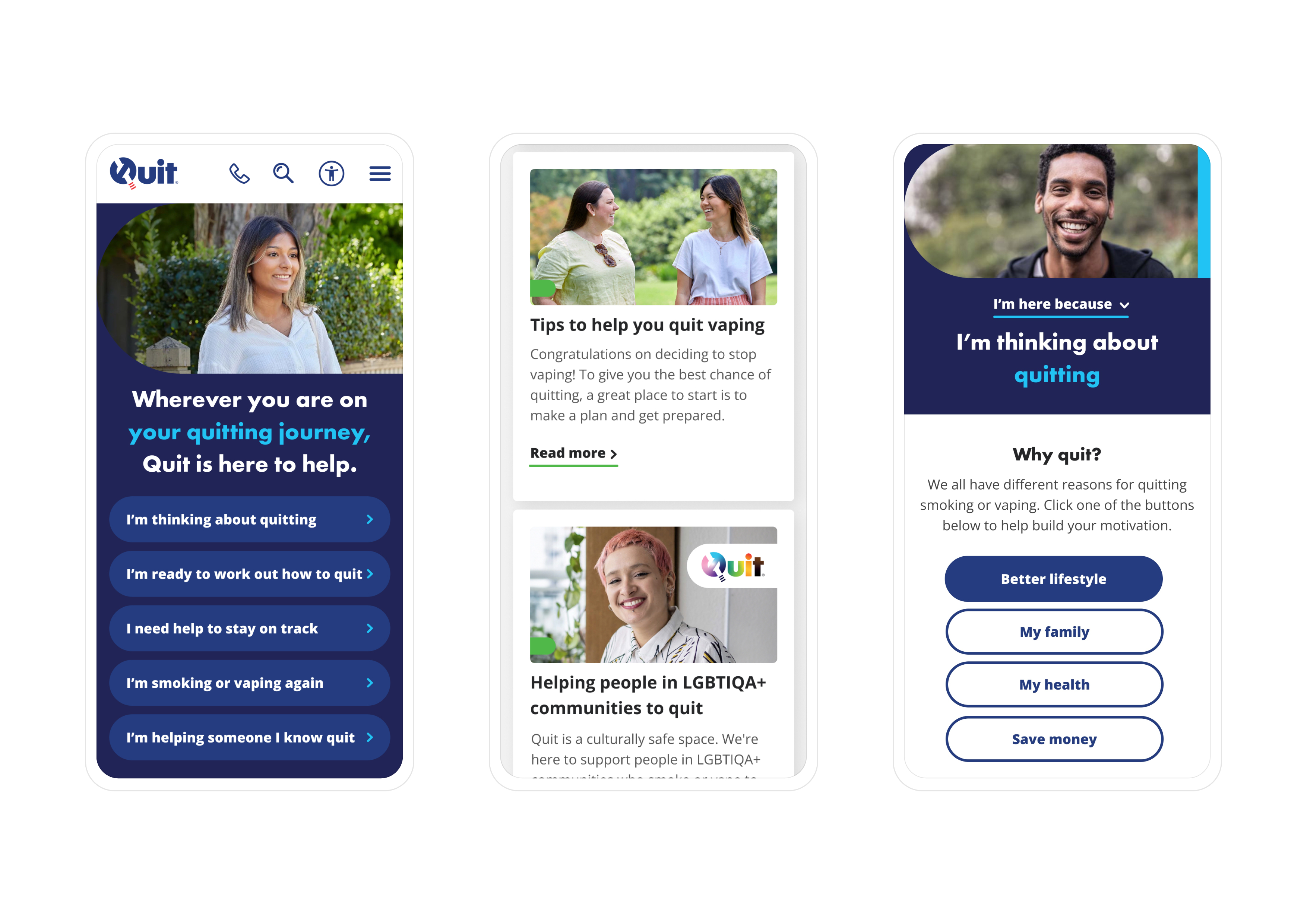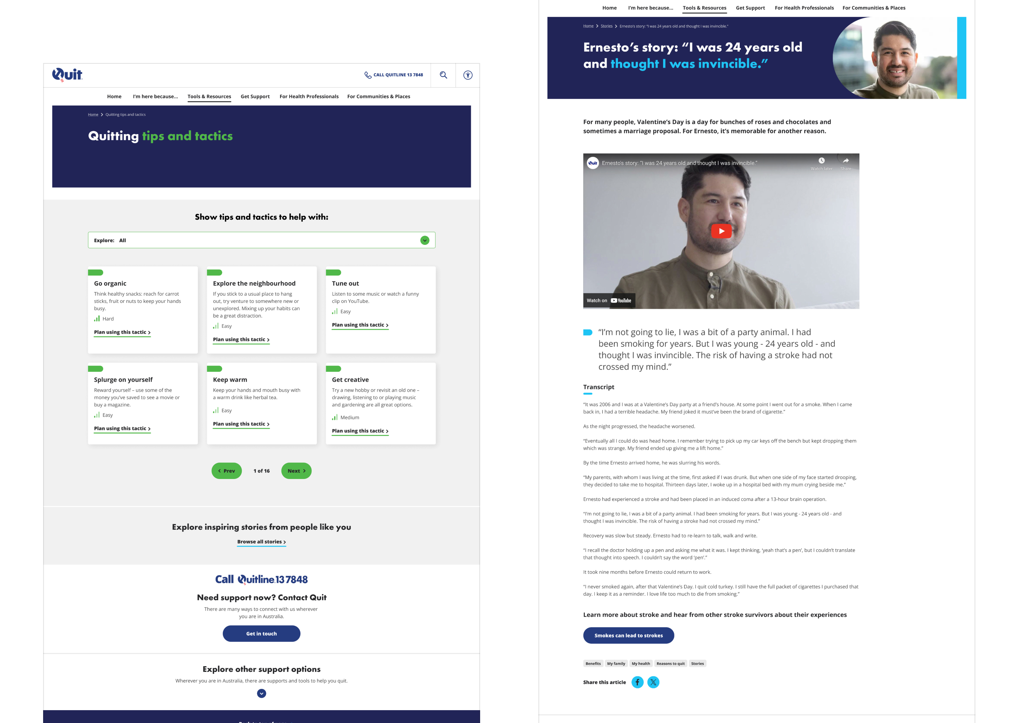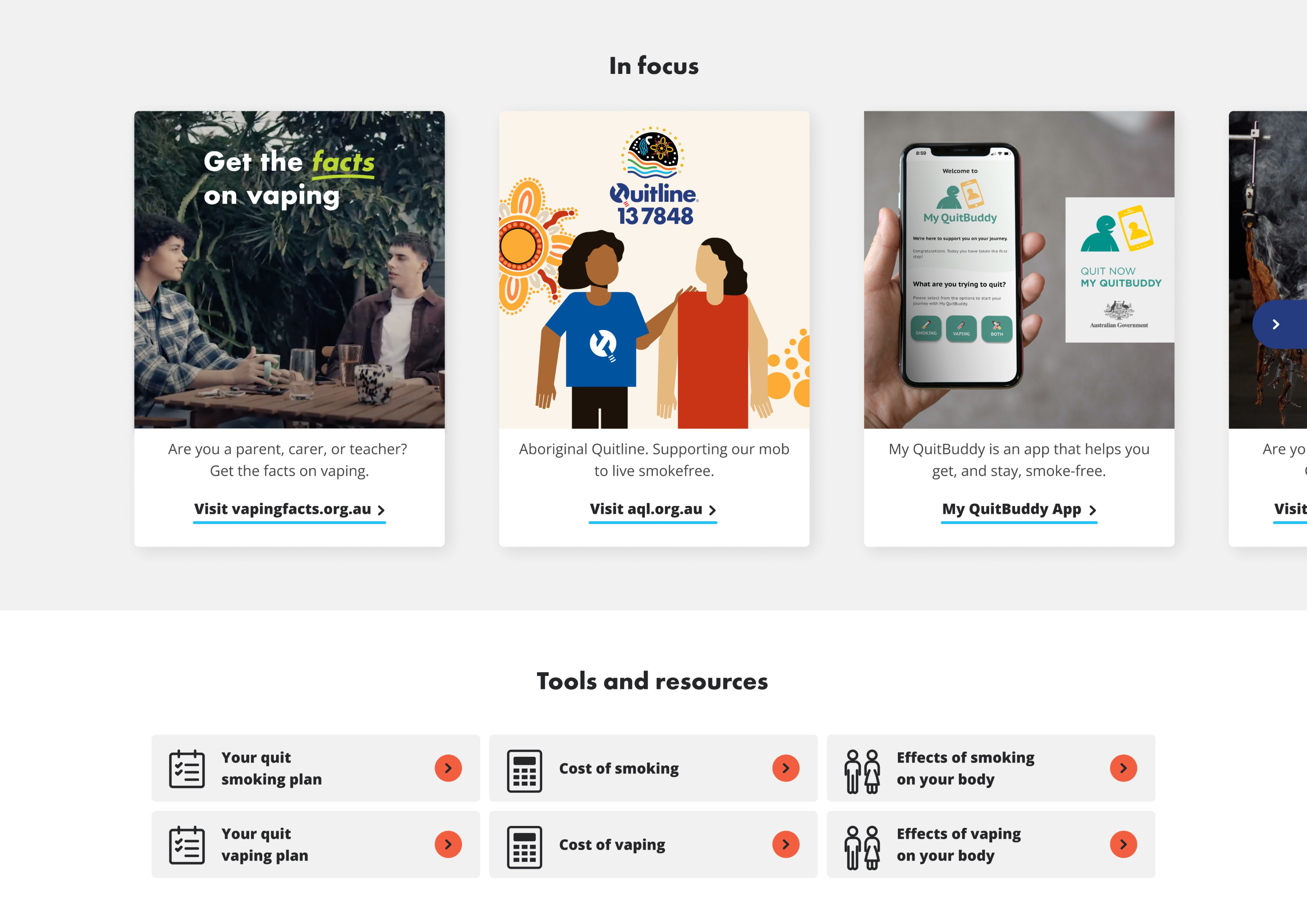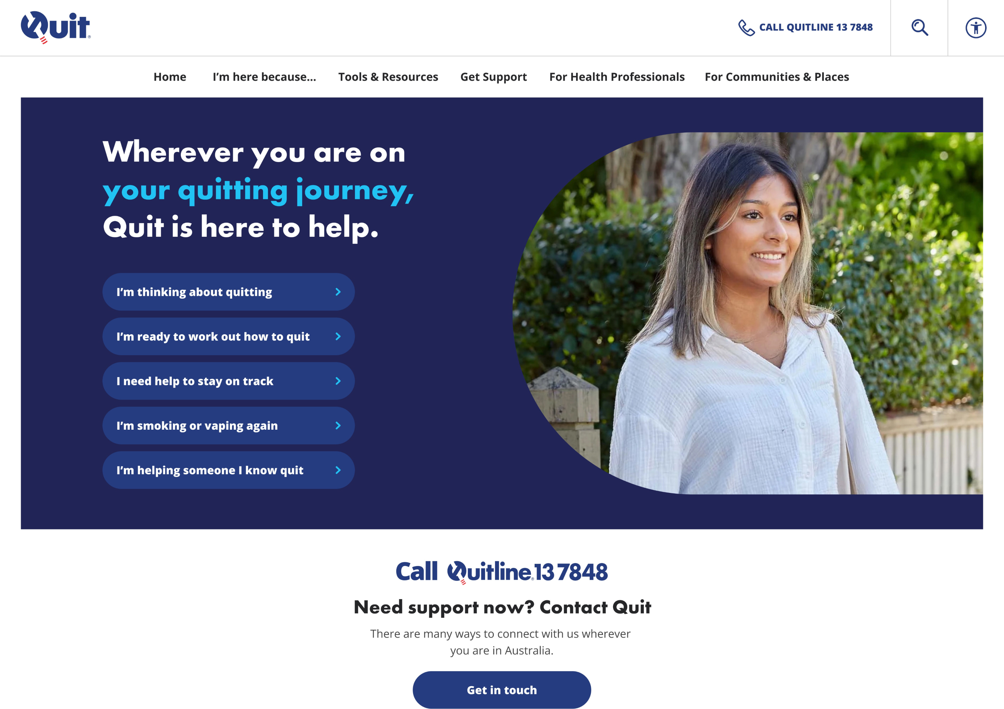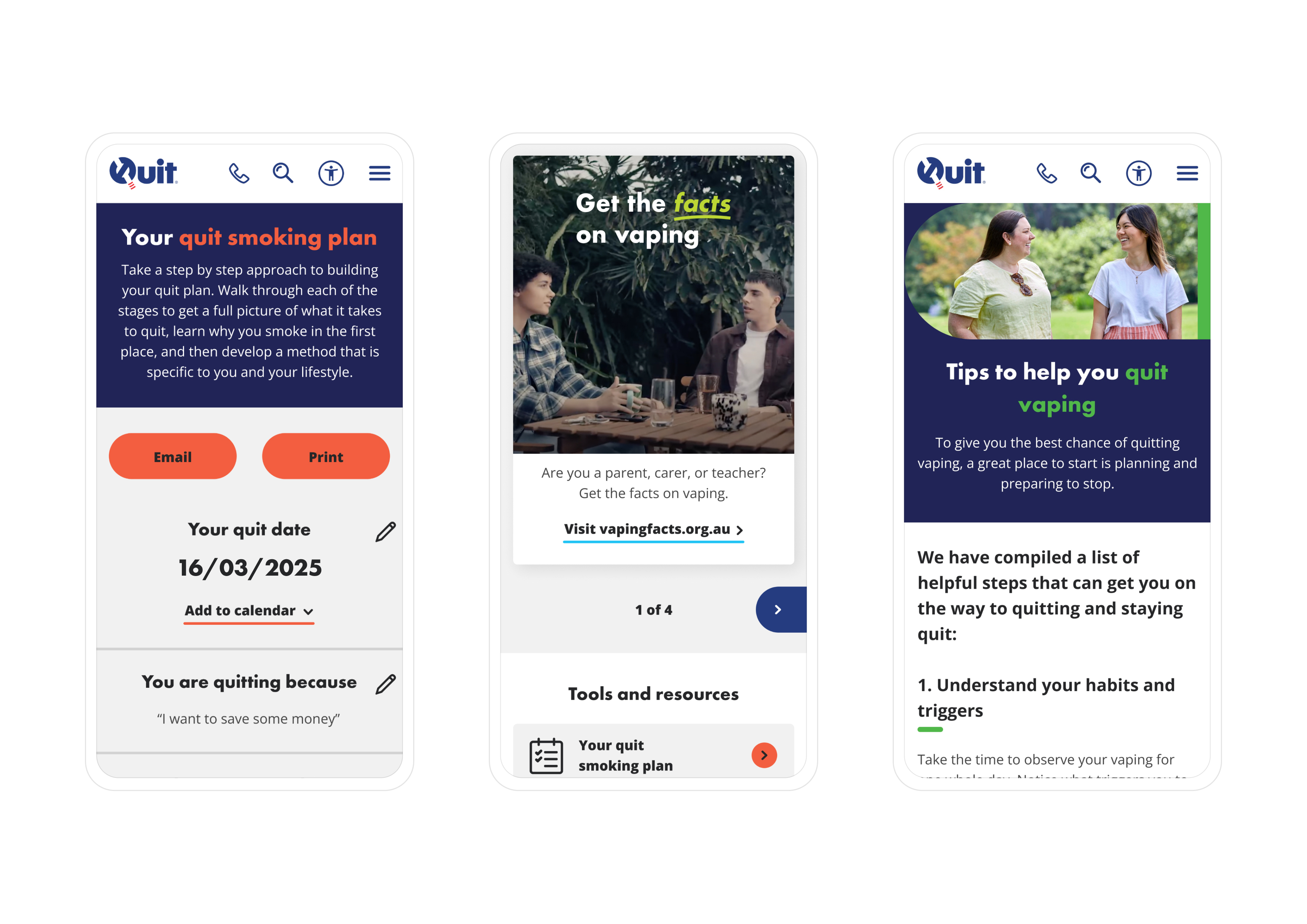 Quit provides free, confidential, professional, evidence-based counselling and information to support smokers in quitting. In response to the rise of vaping nicotine addiction among young Australians, Quit has relaunched its website, providing a more inclusive and youthful experience including tools, health resources, and expanded support for quitting smoking and vaping.