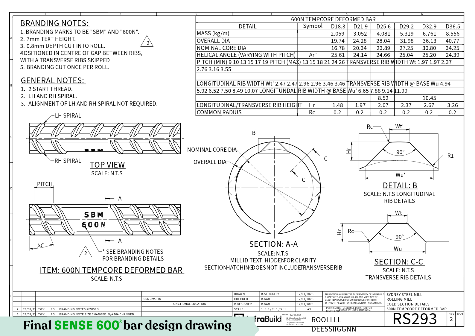 InfraBuild’s SENSE 600® high strength 600MPa reinforcing bar with its innovative design lights the way to more sustainable construction. Its higher strength and smaller diameter equivalent capacity bars reduce embodied carbon when used in place of 500MPa conventional bar in the construction of reinforced concrete buildings.