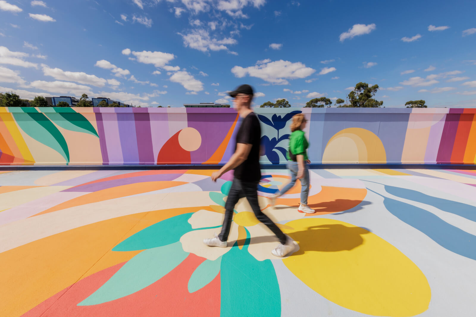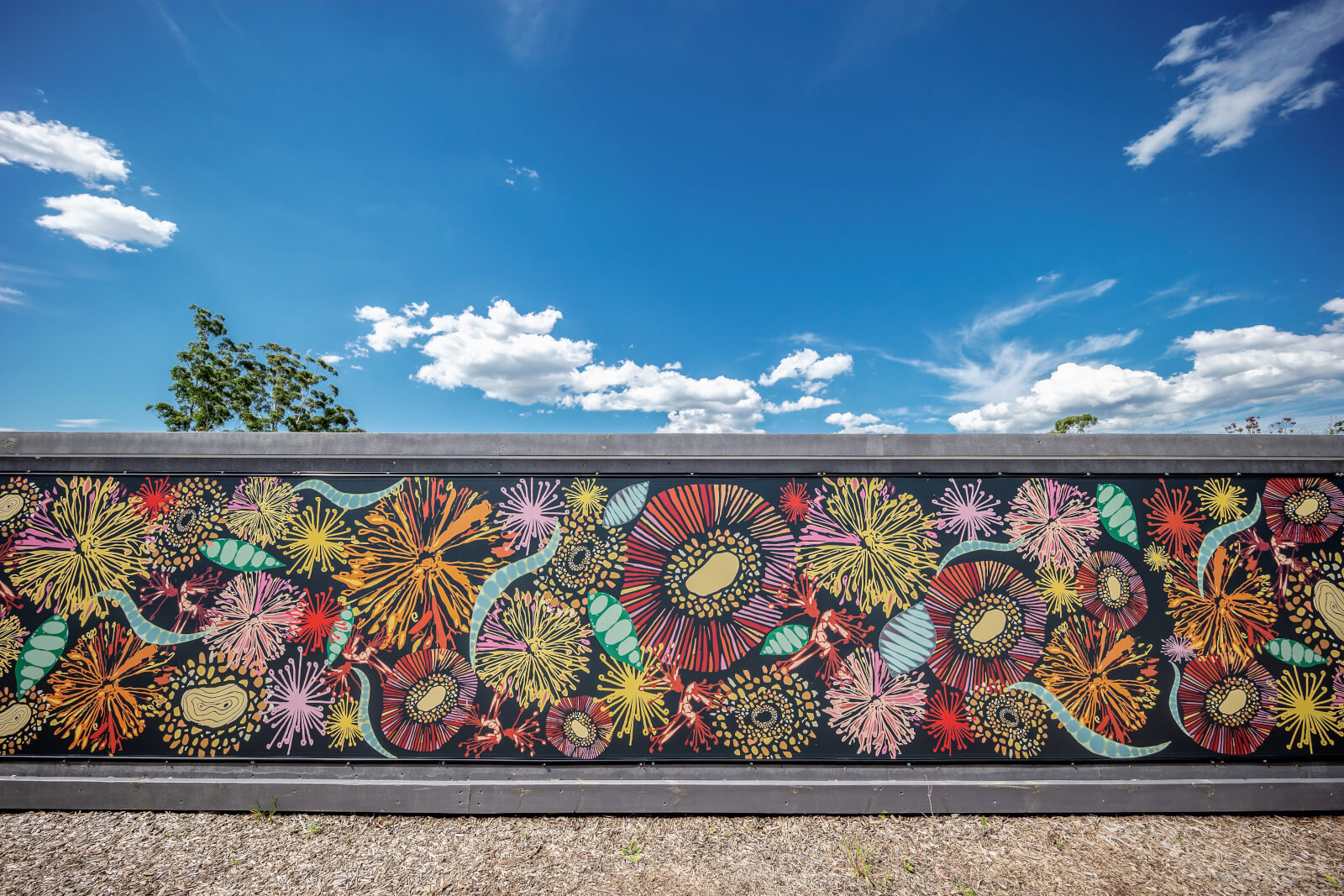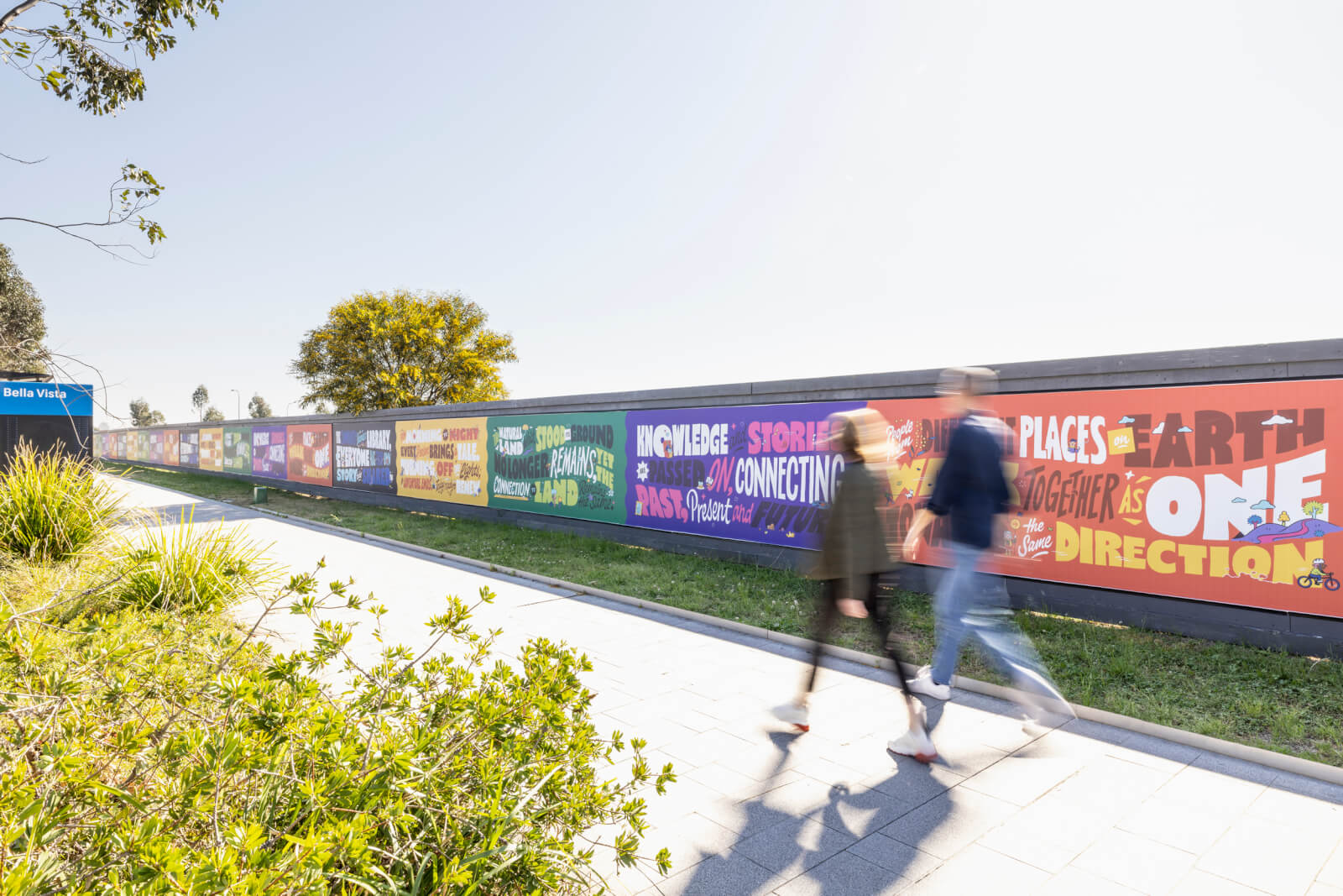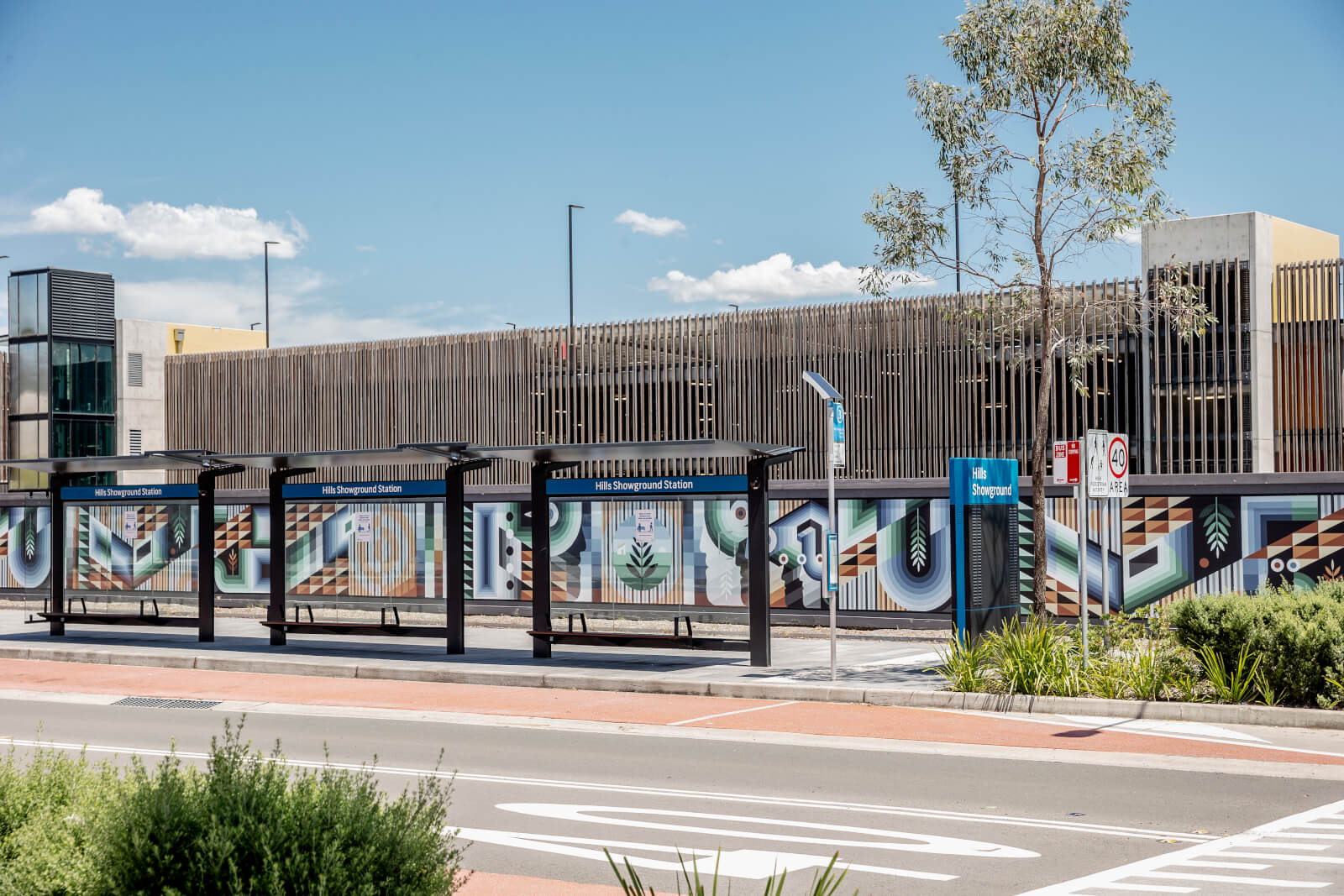 As neighbourhoods transform around the new Sydney Metro Northwest Metro stations, Landcom and Sydney Metro have created vast cultural landmarks – incredible murals that capture and celebrate Dharug traditions and the diverse northwest community. The murals aim to inspire people’s commutes and build excitement around these emerging new places.