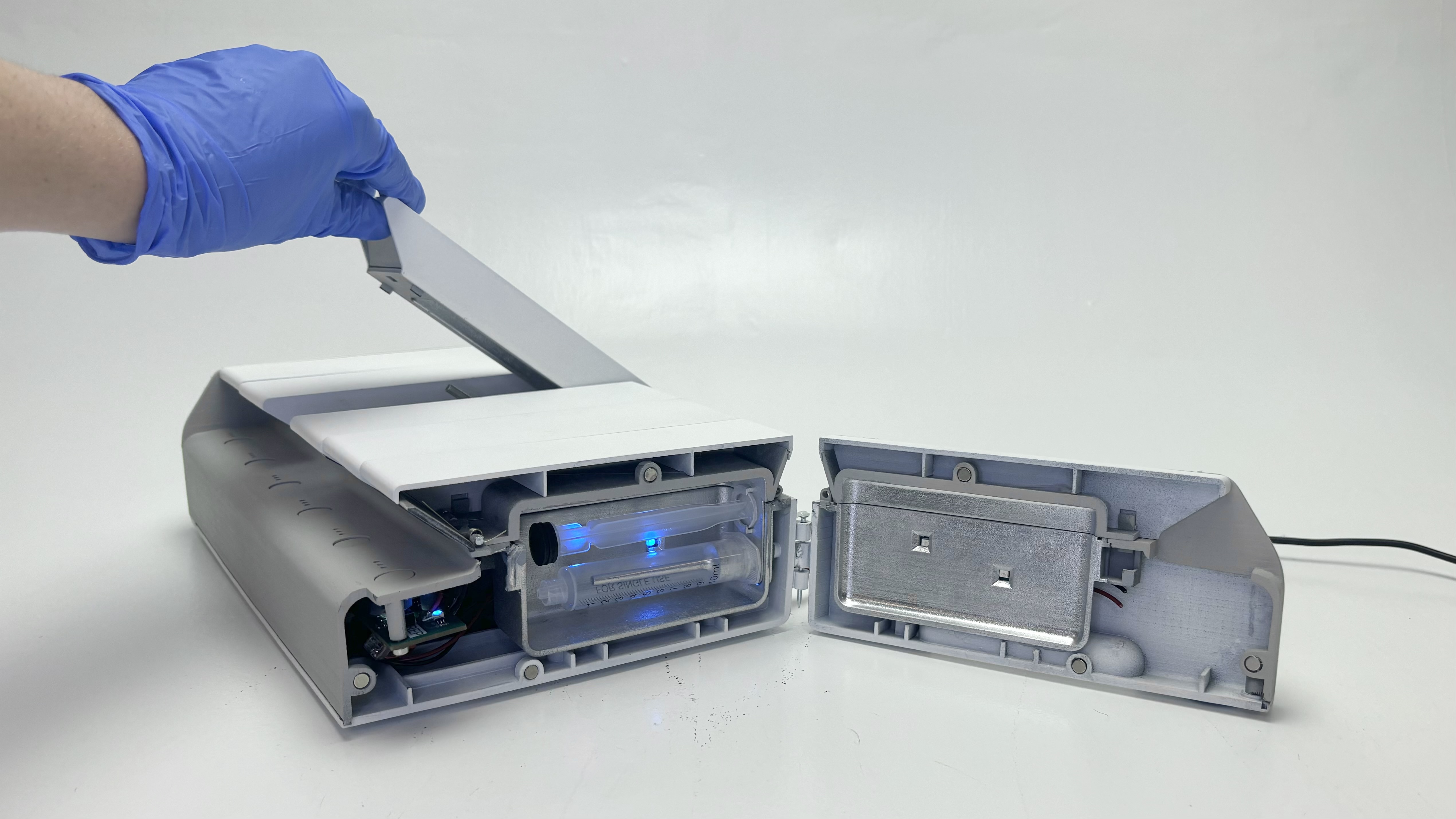 Worldwide, 40% of injections are delivered using unsterile, re-used syringes, causing 1.3 million preventable deaths yearly. SyriSter is a UV-C sterilisation device for syringes targeted for use in disaster/crisis zones where re-use is a common or necessary practice. SyriSter aims to make re-use practices safer through reliable sterilisation.