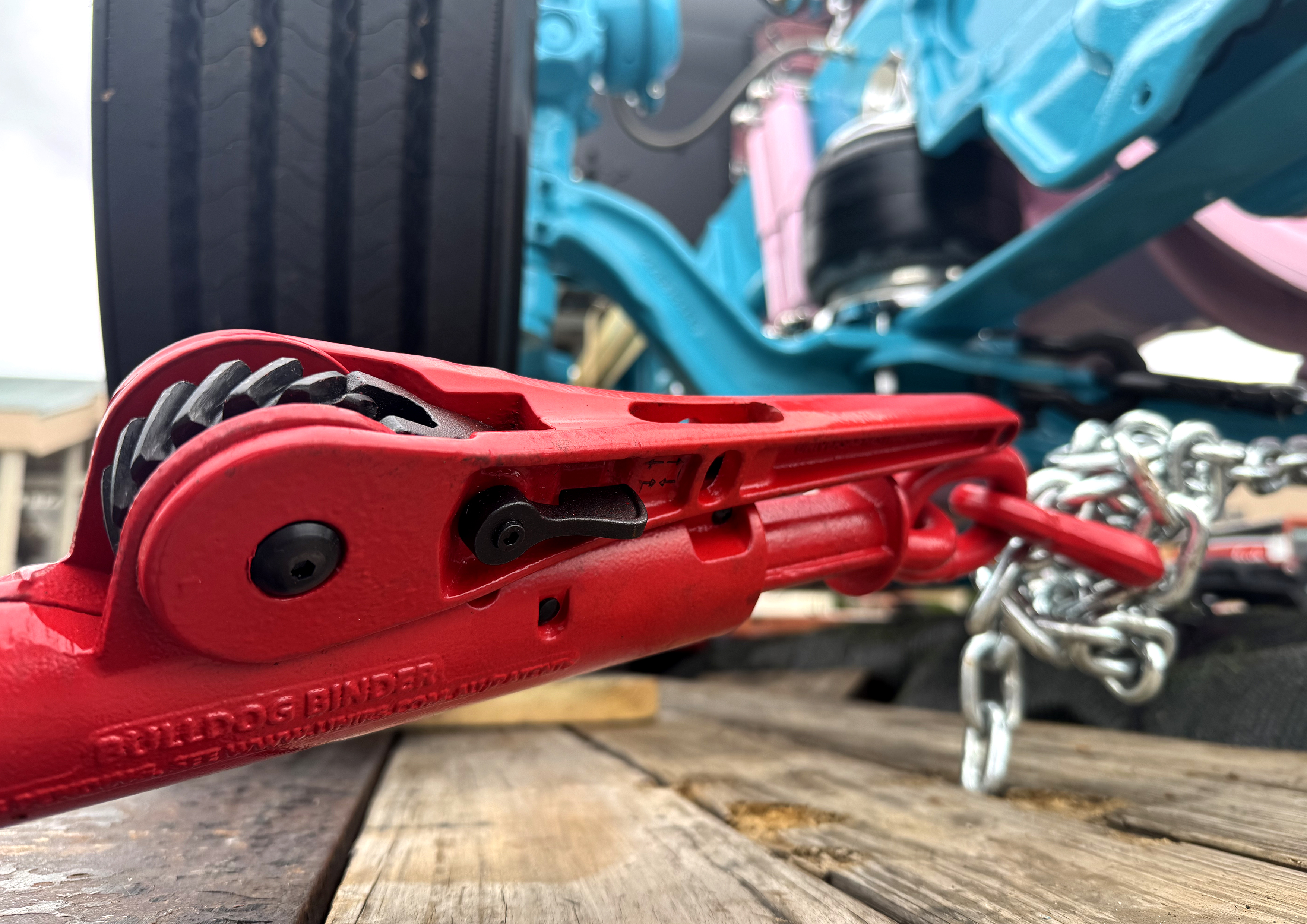 The Bulldog Binder is a heavy-duty chain loadbinder designed for long-haul transport. Its patented linear ratcheting mechanism prevents chain twist and unwinding of the binder during transit, ensuring tightly secured loads. Designed for better ergonomics, it sets a new benchmark for safety and reliability in the haulage industry.