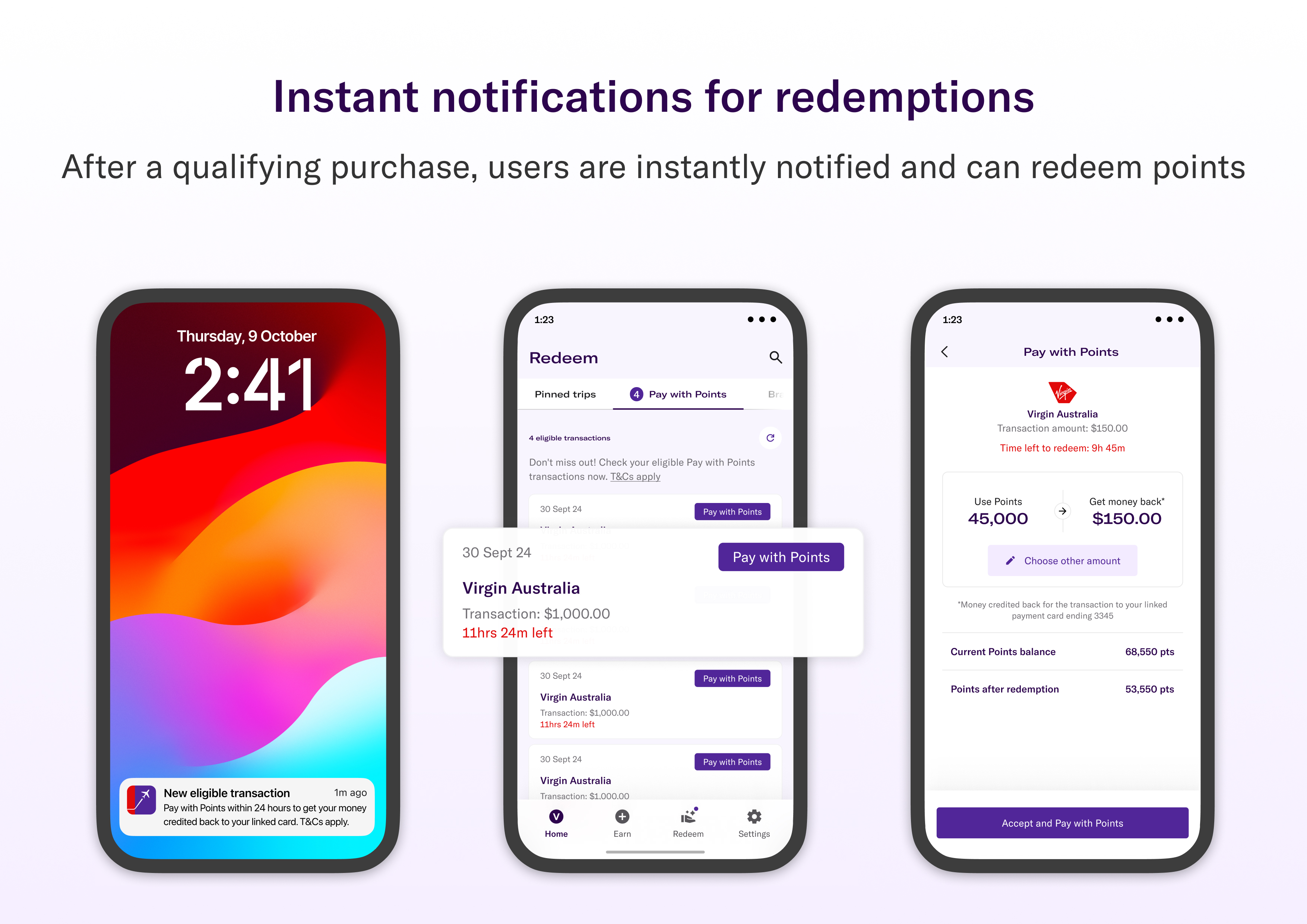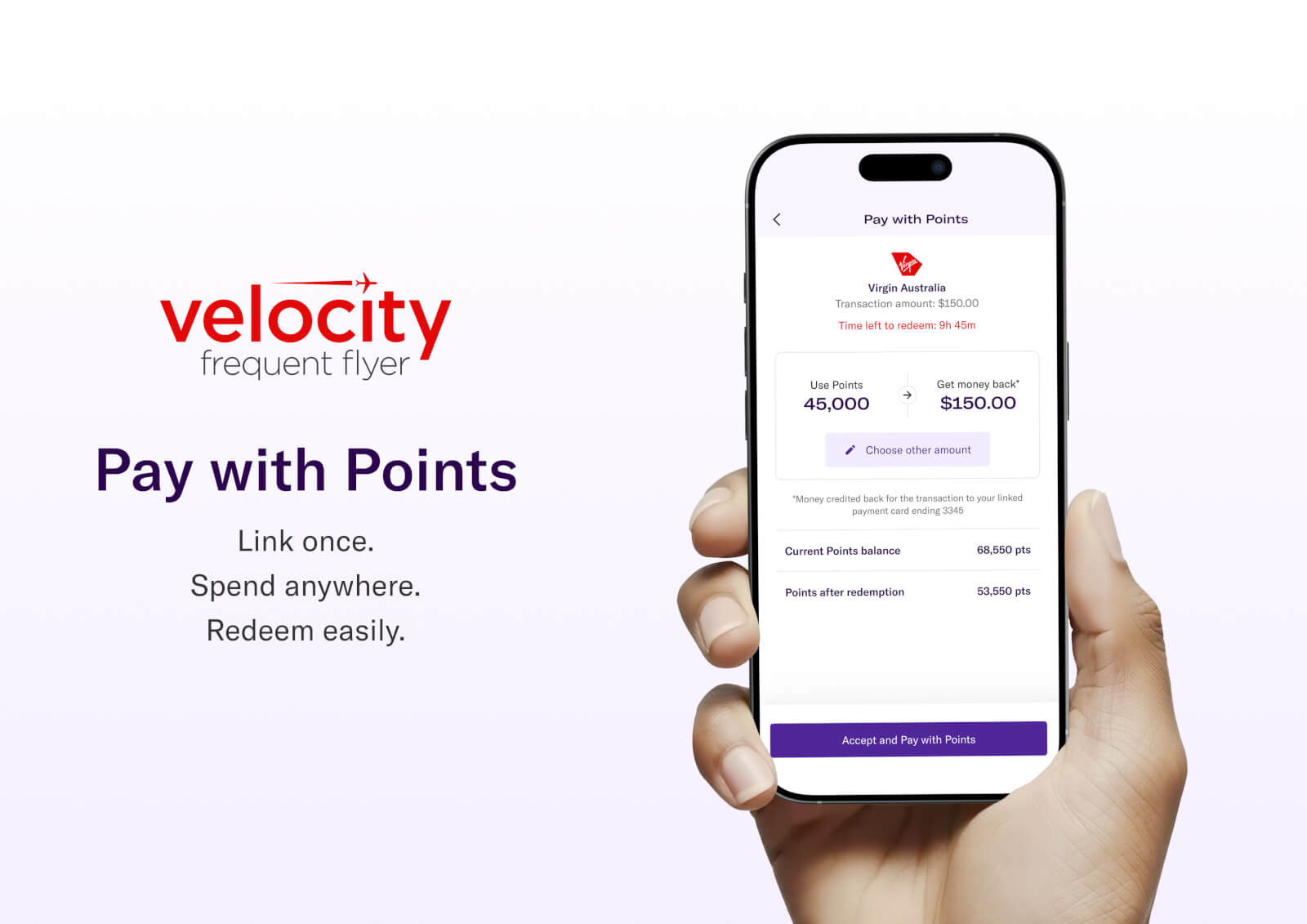 Pay with Points lets Velocity members instantly redeem their frequent flyer points for purchases – no manual transfers, no guesswork, just money effortlessly back into their account. Designed for points-savvy, under-35s, Pay with Points turns everyday spending of points into a more engaging, intuitive, and rewarding experience.